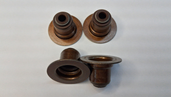Selos de haste de válvula com mola de contenção e materiais de alta temperatura.