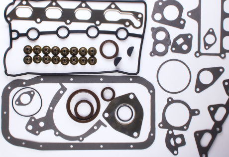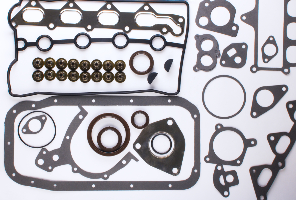 O jogo de juntas assegura a vedação de combustão, óleo e fluido de arrefecimento em todo o motor. A junta do cabeçote pode ser MLS (camadas de aço com elastômero) ou composta, especificada por espessura comprimida, diâmetros de fire ring e perfil de vedação; demais juntas cobrem tampa de válvulas, cárter, coletores, bomba d’água/termostática e eixos. O desempenho depende de planicidade/rugosidade (RA) do plano, sequência/torque corretos e, em aplicações TTY, da substituição dos parafusos; uso de selantes deve seguir apenas os pontos previstos pelo projeto.
